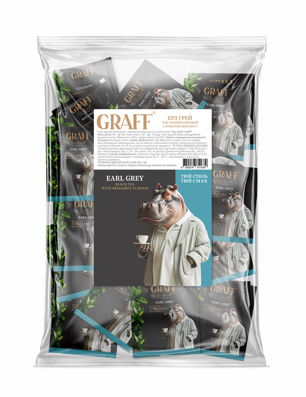 Чай Graff чорний байховий "Ерл грей" з ароматом бергамоту (саше), 90г